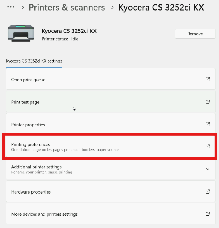 - Step 4: Select Printing preferences
