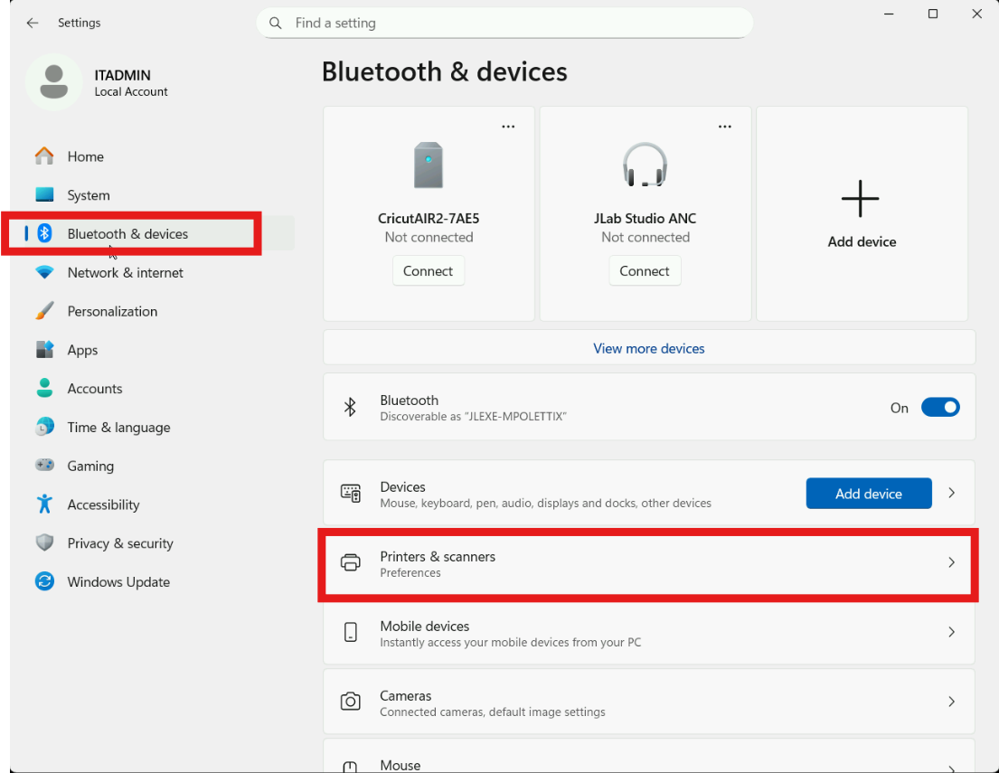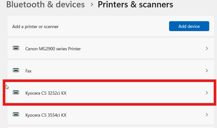 Step 2: Select the Bluetooth & devices menu and select Printers and Scanners